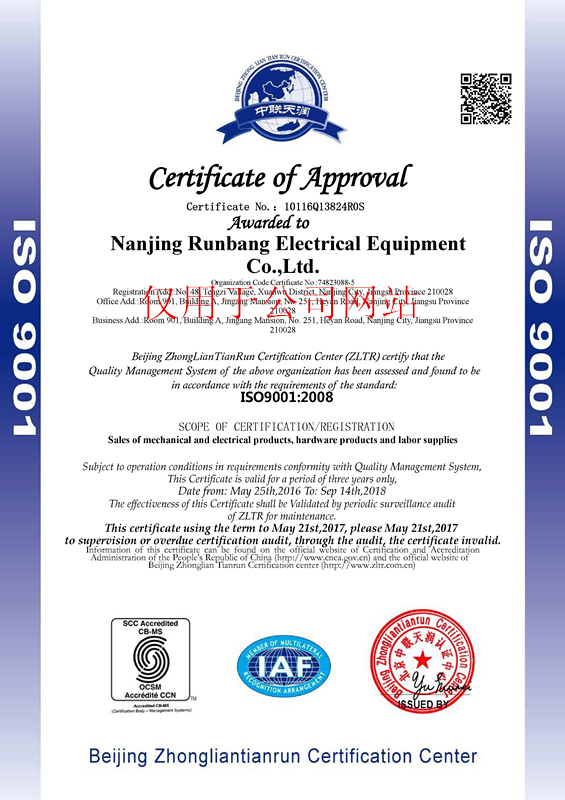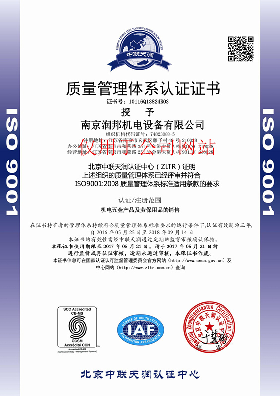 2016年5月25日,我公司再次順利通過ISO9001質(zhì)量管理體系認證,以下是認證證書: