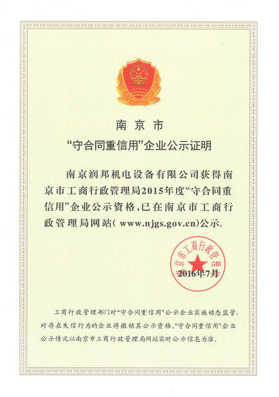 近日,接到南京市企業(yè)信用管理協(xié)會(huì)通知,我公司正式通過(guò)2015年度市級(jí)“守合同重信用”企業(yè)的認(rèn)定,并予授牌和頒發(fā)證書。